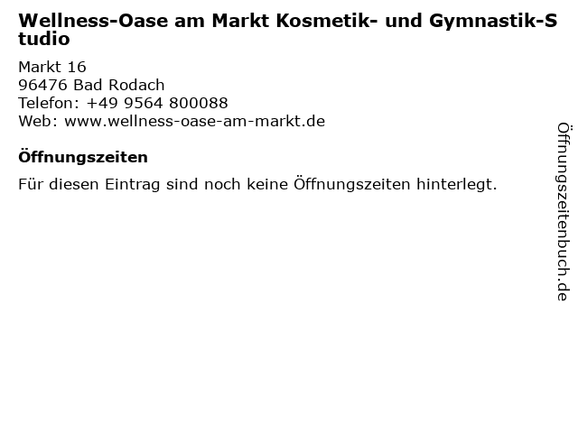 | Wellness-Oase am Markt Kosmetik- und Gymnastik-Studio anrufen | |