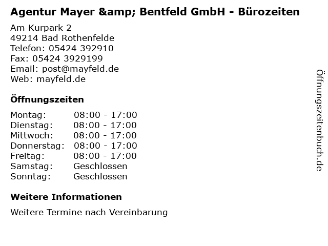 Branchen & Suchbegriffe zu Agentur Mayer & Bentfeld GmbH - Bürozeiten:agentur, bentfeld, bürozeiten, kommunikation, marketing, mayer, werbe, werbetechnik |