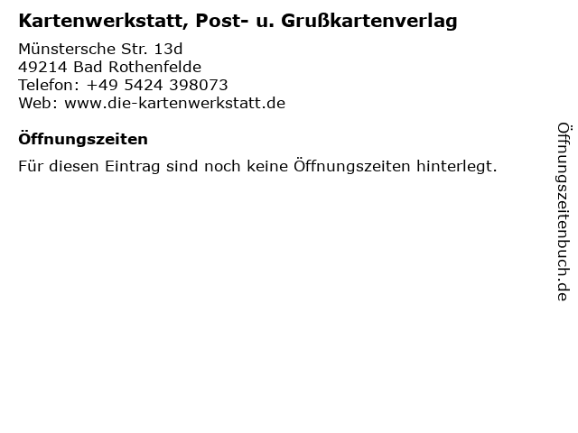 | Kartenwerkstatt, Post- u. Grußkartenverlag anrufen | |