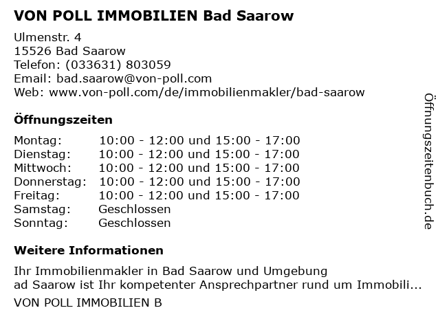 | Freitag | 10:00-12:00 und 15:00-17:00 |