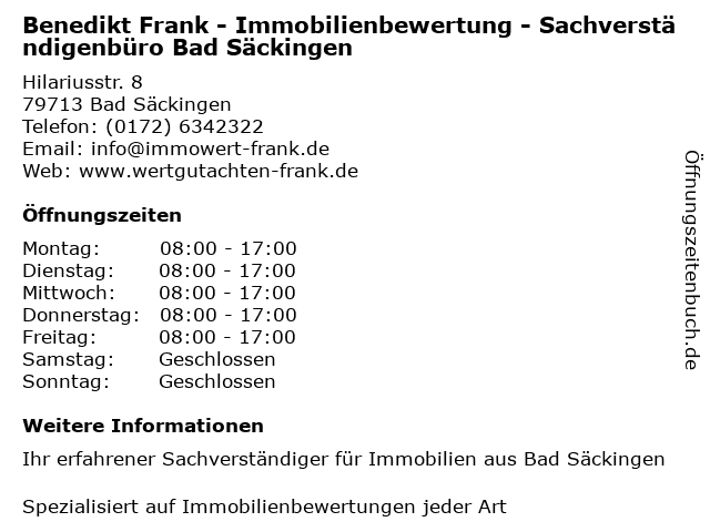 Branchen & Suchbegriffe zu Benedikt Frank - Immobilienbewertung - Sachverständigenbüro Bad Säckingen:bad, benedikt, frank, immobilien-wertgutachten, immobilienbewertung, immobiliensachverständiger, sachverständigenbüro |