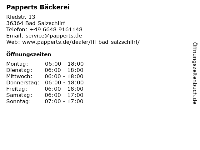 | Öffnungszeiten Papperts Bäckerei in Bad Salzschlirf anzeigen | |