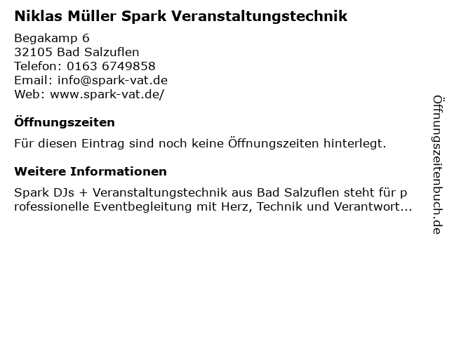 | Niklas Müller Spark Veranstaltungstechnik anrufen | |