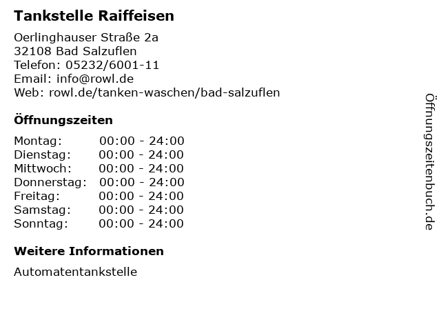 | Öffnungszeiten Tankstelle Raiffeisen in Bad Salzuflen anzeigen | |