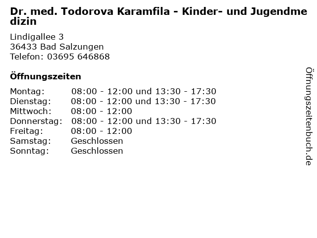 Branchen & Suchbegriffe zu Dr. med. Todorova Karamfila - Kinder- und Jugendmedizin:arzt, doktor, dr., jugendmedizin, karamfila, kinder, klinikum, med., medizin, sprechzeiten, todorova |