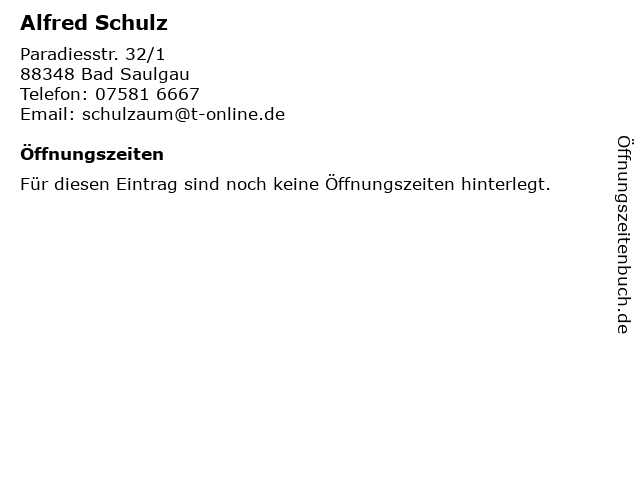 | Öffnungszeiten Alfred Schulz in Bad Saulgau anzeigen | |