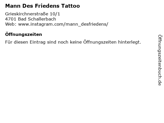 | Öffnungszeiten Mann Des Friedens Tattoo in Bad Schallerbach anzeigen | |