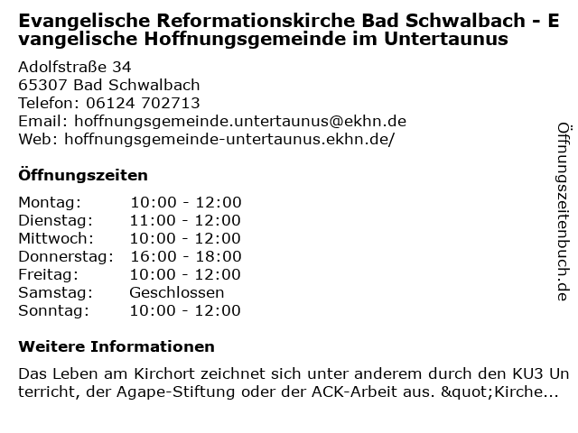 Branchen & Suchbegriffe zu Evangelische Reformationskirche Bad Schwalbach - Evangelische Hoffnungsgemeinde im Untertaunus:bad, evangelische, hoffnungsgemeinde, reformationskirche, untertaunus |