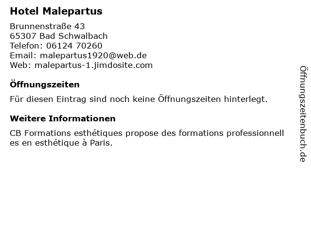 | Öffnungszeiten Hotel Malepartus in Bad Schwalbach anzeigen | |