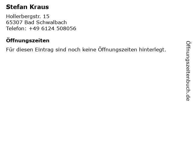 | Öffnungszeiten Stefan Kraus in Bad Schwalbach anzeigen | |