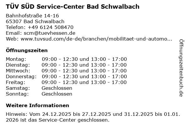 | Freitag | 09:00-12:30 und 13:00-17:00 |