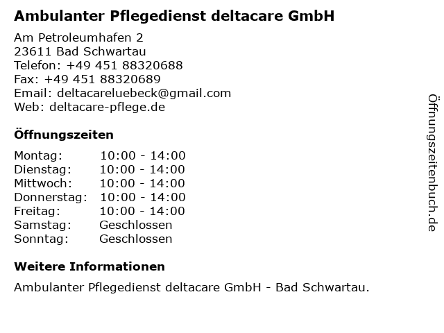 Branchen & Suchbegriffe zu Ambulanter Pflegedienst deltacare GmbH:ambulanter, ambulanter pflegedienst, deltacare, pflegedienst |