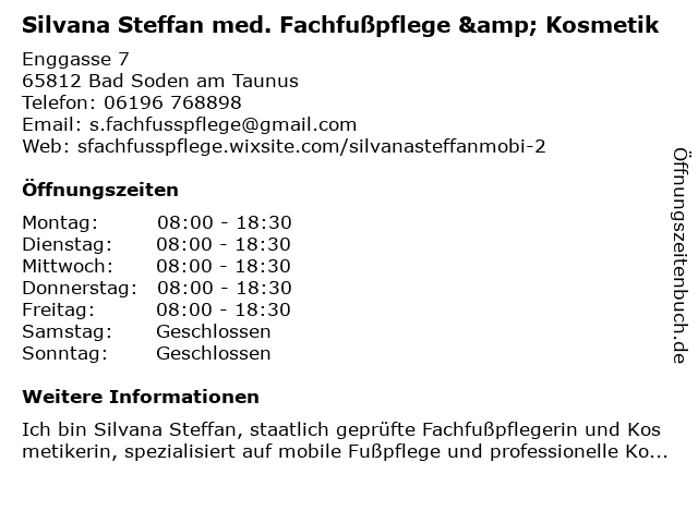 Branchen & Suchbegriffe zu Silvana Steffan med. Fachfußpflege & Kosmetik:fachfußpflege, kosmetik, med., silvana, steffan |
