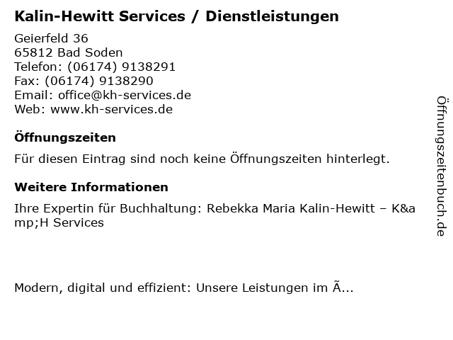 | Kalin-Hewitt Services / Dienstleistungen anrufen | |