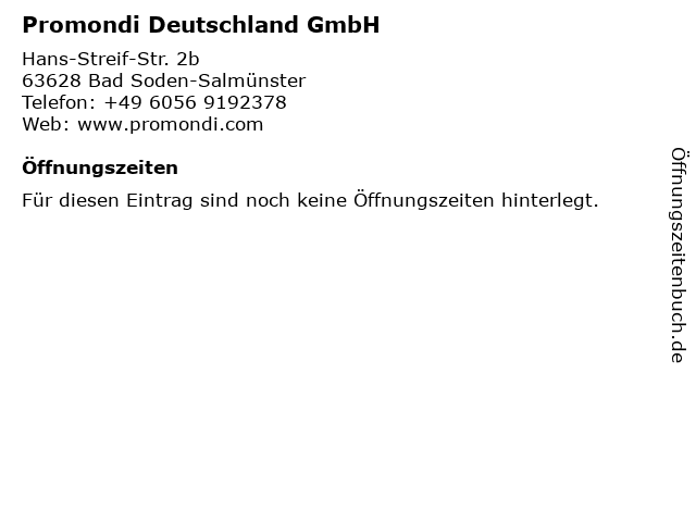 2 Promondi Deutschland -Lagerverkauf (Entfernung: 0,00 km) Hans-Streif-Str. 2b, 63628 Bad Soden-Salmünster 6 EDV-Drucksysteme Stefan Rother e. K. (Entfernung: 39,64 km) Geschwister-Scholl-Platz 5, 63741 Aschaffenburg |