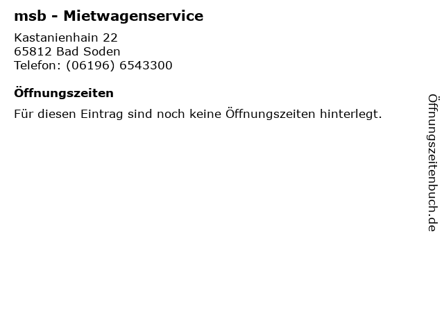 | Öffnungszeiten msb - Mietwagenservice in Bad Soden anzeigen | |