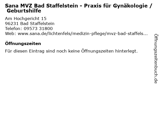 | Sana MVZ Bad Staffelstein - Praxis für Gynäkologie / Geburtshilfe anrufen | |