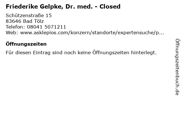 | Friederike Gelpke, Dr. med. - Closed anrufen | |