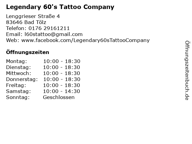 Branchen & Suchbegriffe zu Legendary 60's Tattoo Company:60's, company, dienste, ink, legendary, tattoo, tattoostudio |