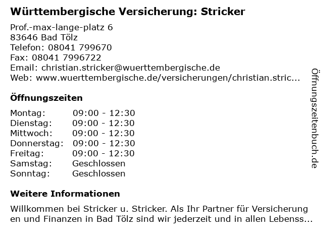 Branchen & Suchbegriffe zu Württembergische Versicherung: Stricker:stricker, versicherung, württembergische |