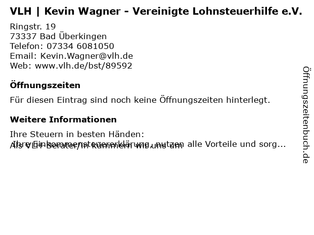| VLH | Kevin Wagner - Vereinigte Lohnsteuerhilfe e.V. anrufen | |