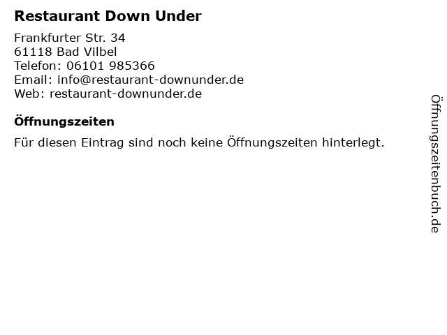 | Öffnungszeiten Restaurant Down Under in Bad Vilbel anzeigen | |