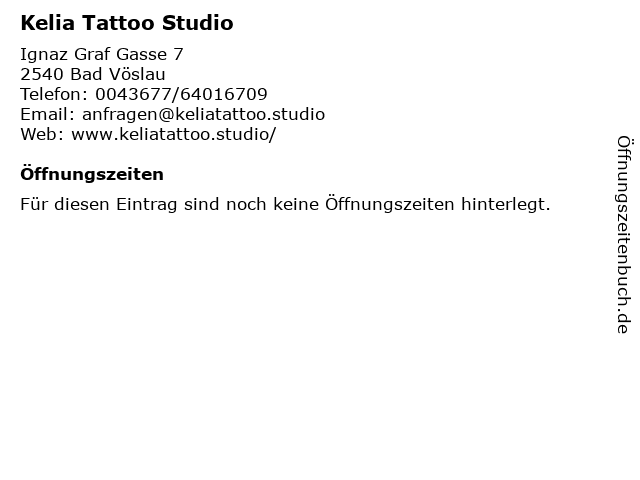 | Öffnungszeiten Kelia Tattoo Studio in Bad Vöslau anzeigen | |