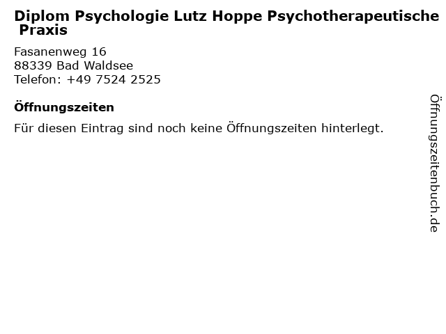 | Diplom Psychologie Lutz Hoppe Psychotherapeutische Praxis anrufen | |