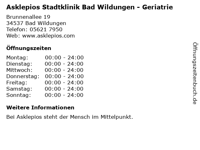 Branchen & Suchbegriffe zu Asklepios Stadtklinik Bad Wildungen - Geriatrie:asklepios, bad, geriatrie, stadtklinik |