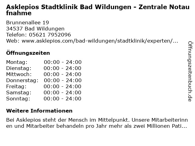 Branchen & Suchbegriffe zu Asklepios Stadtklinik Bad Wildungen - Zentrale Notaufnahme:asklepios, bad, notaufnahme, stadtklinik, zentrale |