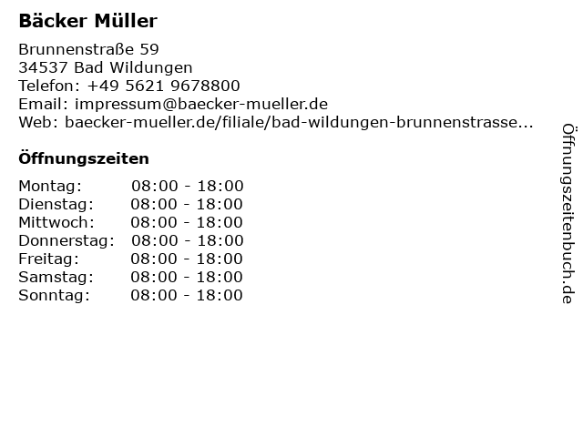 | Öffnungszeiten Bäcker Müller in Bad Wildungen anzeigen | |