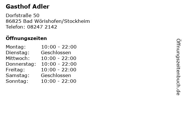 Gasthof Adler in Bad Wörishofen/Stockheim: Telefonnummer, Öffnungszeiten und Adresse
