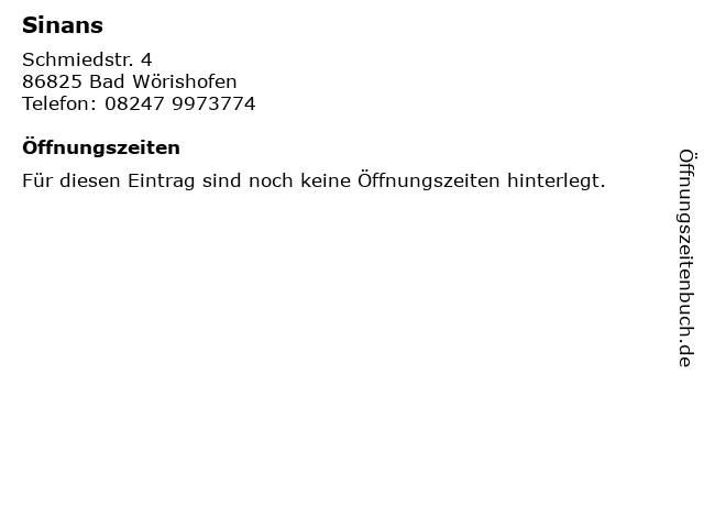 | Öffnungszeiten Sinans in Bad Wörishofen anzeigen | |
