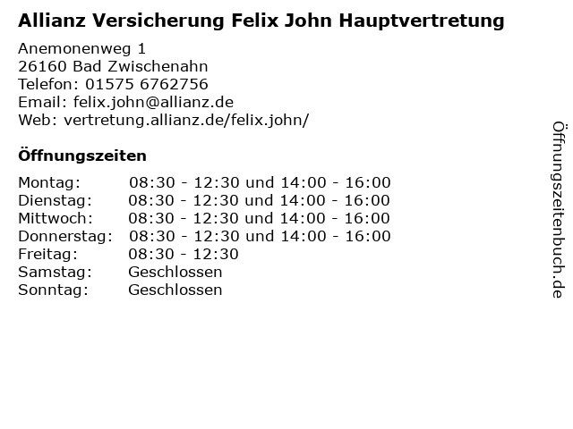 1 Allianz Versicherung Söhnke Schmidt Hauptvertretung (Entfernung: 2,84 km) Westersteder Straße 7, 26160 Bad Zwischenahn 5 Allianz Versicherung Nils van Mark-Geveshausen Hauptvertretung (Entfernung: 10,58 km) Poststraße 28, 26655 Westerstede 6 Allianz Versicherung Tanja Rigbers Hauptvertretung (Entfernung: 10,64 km) Lange Straße 20, 26655 Westerstede |