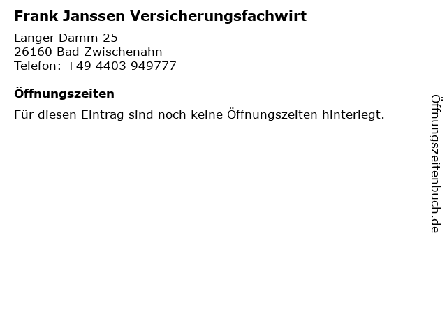 | Frank Janssen Versicherungsfachwirt anrufen | |