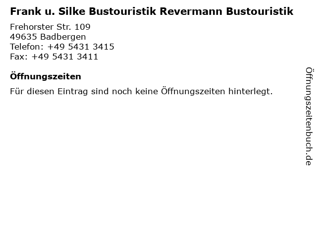 | Frank u. Silke Bustouristik Revermann Bustouristik anrufen | |