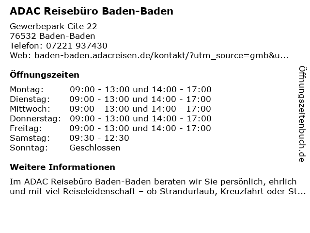 Branchen & Suchbegriffe zu ADAC Reisebüro Baden-Baden:adac, baden, reisebüro, reiseversicherungsagentur |