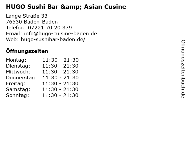 Branchen & Suchbegriffe zu HUGO Sushi Bar & Asian Cusine:asian, bar, cusine, essen, gastronomie, getränke, hauptgerichte, hugo, restaurant, salate, sushi, vorspeisen |
