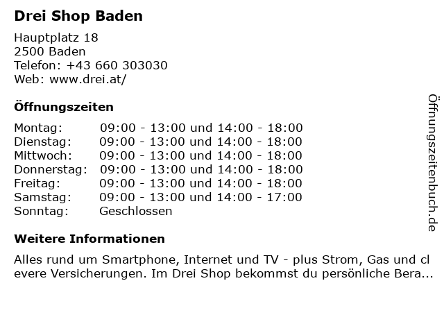 | Adresse Drei Shop Baden in Baden anzeigen |