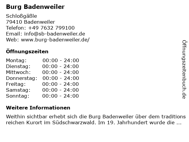 | Öffnungszeiten Burg Badenweiler in Badenweiler anzeigen | |