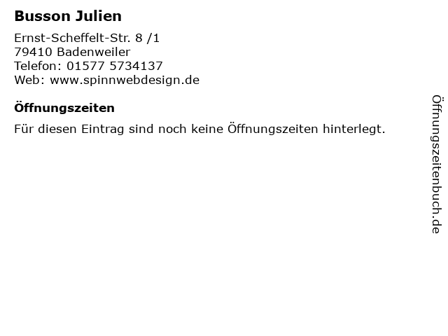 | Öffnungszeiten Busson Julien in Badenweiler anzeigen | |
