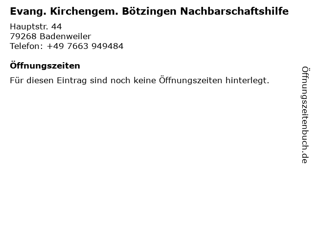 | Evang. Kirchengem. Bötzingen Nachbarschaftshilfe anrufen | |