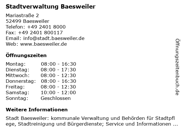 Branchen & Suchbegriffe zu Stadtverwaltung Baesweiler:behörden, stadt, stadt baesweiler, stadtpflege, stadtreinigung, stadtverwaltung, stadtverwaltungen |