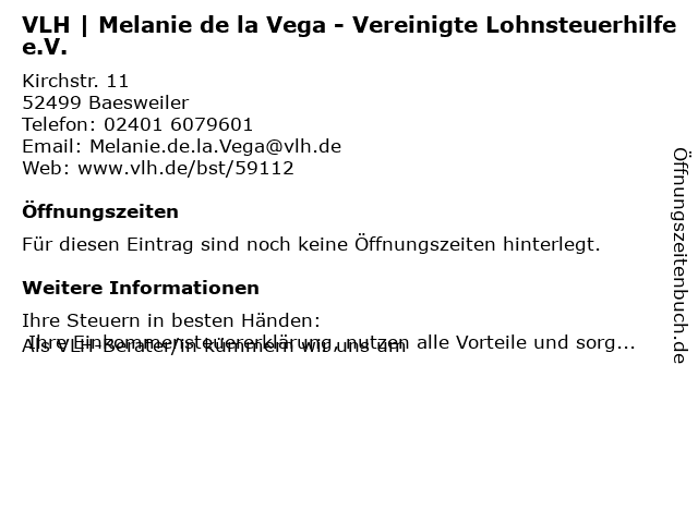 | VLH | Melanie de la Vega - Vereinigte Lohnsteuerhilfe e.V. anrufen | |