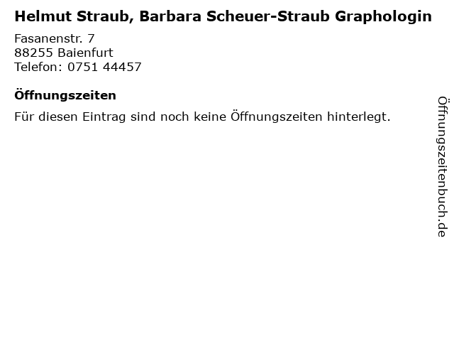 | Helmut Straub, Barbara Scheuer-Straub Graphologin anrufen | |