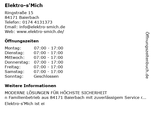 Öffnungszeiten Elektro-s'Mich in Baierbach anzeigen | |