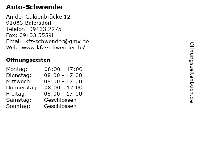 | Öffnungszeiten Auto-Schwender in Baiersdorf anzeigen | |