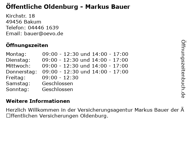 Branchen & Suchbegriffe zu Öffentliche Oldenburg - Markus Bauer:bauer, markus, öffentliche |