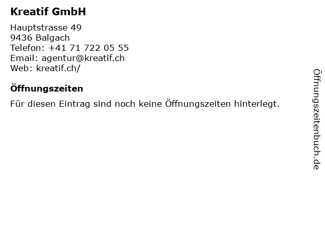| Öffnungszeiten Kreatif GmbH in Balgach anzeigen | |