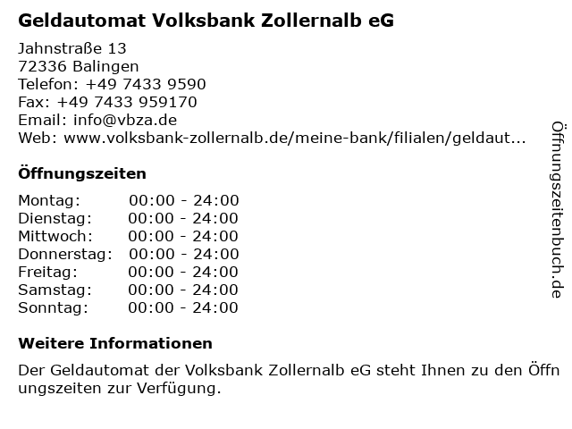Öffnungszeiten Geldautomat Volksbank Zollernalb eG